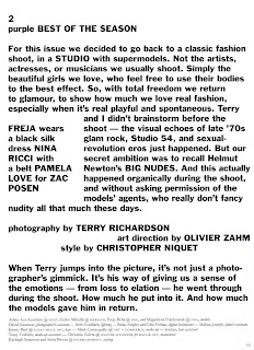 Freja's Purple Magazine editorial is up, thanks to candlebougie at tFS. And depending on your sex, your opinion about the exploitative tendencies of the fashion industry, and your views on sexual politics, you're either going to love it or hate it.