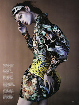 This piece was edited/styled by Lucinda Chambers, who also styled one of my favorite Freja eds from last year. I think she has this signature style that seems haphazard at first glance, but quickly moves into wonderful cohesion the more you look. Anyone can throw black on black on white together, but successfully styling prints, patterns and colors together is a completely different story. It takes a bold eye and lots of experience, which Lucinda has. After all, she's been working with Freja since the beginning of her career with the first editorial she shot for Vogue UK. Since then she's basically styled/edited almost everything Freja's done with the magazine. So with their amazing track record of working together (especially in what has to be my favorite Freja editorial ever), I truly look forward to the next thing they'll produce because you can bet it will be visual wonder.